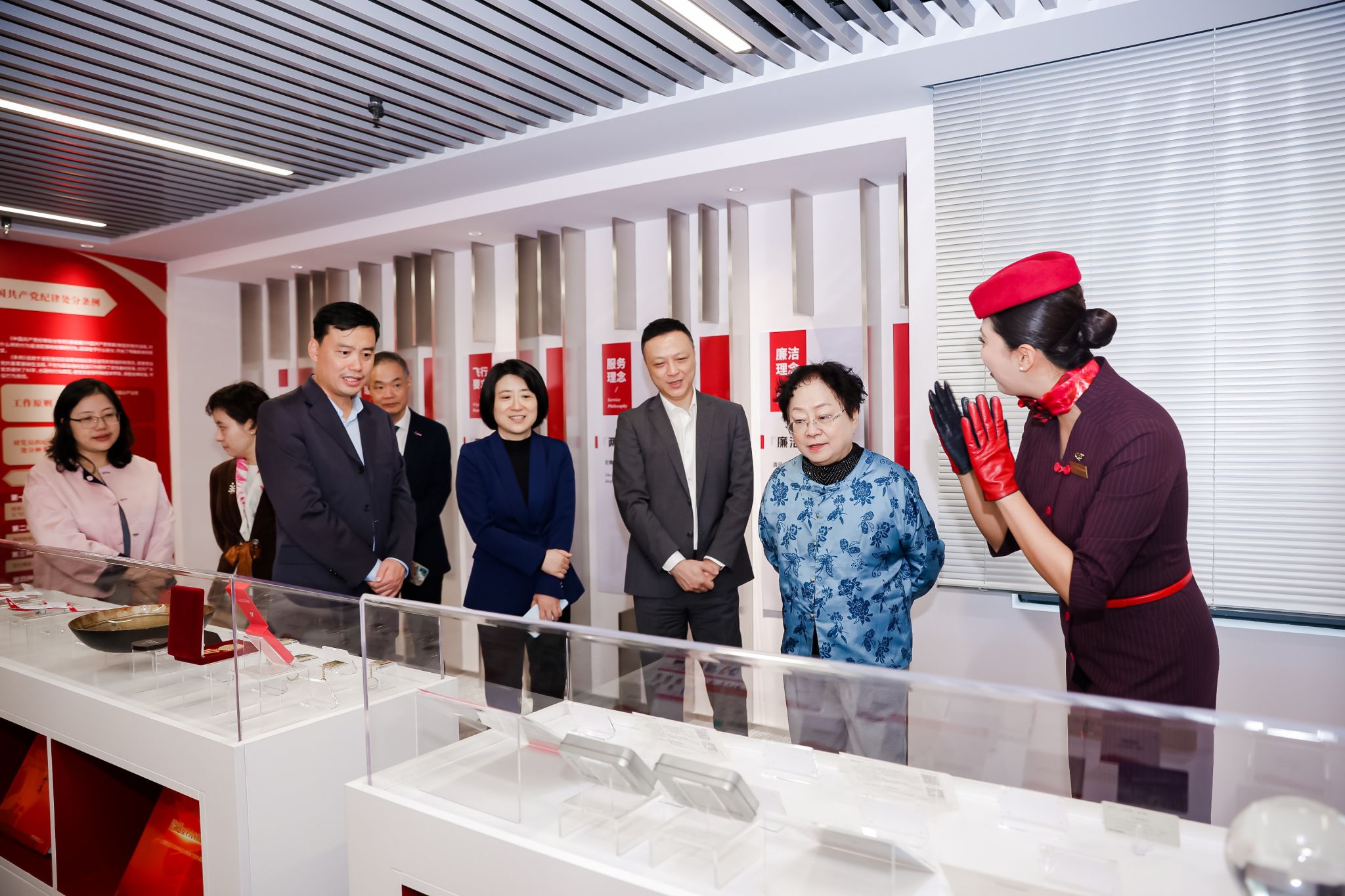 仪式伊始,陈东、胡大伟带队参观了上航企业文化展厅,感受上海航空成立40年来筚路蓝缕、展翅远航的发展历程。