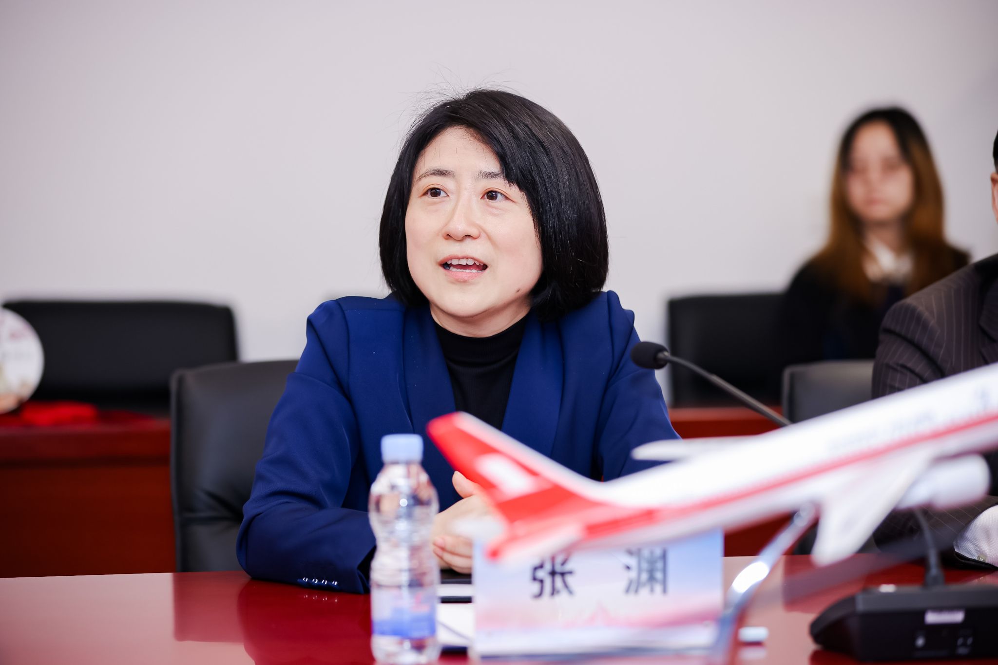 张渊代表上海航空公司对上海大学一行的到来表示热烈欢迎,并指出,当海派文化的雅致韵味遇上云端客舱的流动风景,当高校的人文底蕴牵手航空的服务温度,必将碰撞出独特的火花。张渊强调,此次合作是上海航空提升服务文化内涵、创新服务体验的重要举措,期待通过优势互补,为旅客带来更具温度和特色的空中旅程。