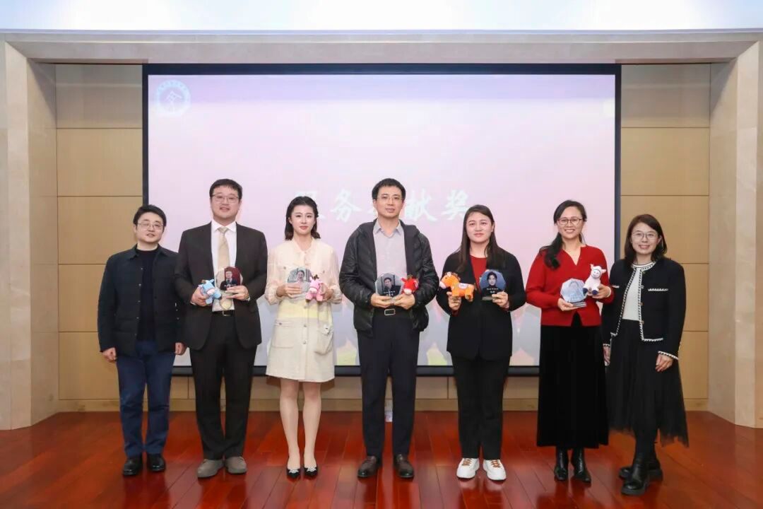 在优秀表彰环节,学院为2025年获奖教师颁奖,颁奖嘉宾由往届奖项得主组成。张珊、刘招静为教学贡献奖获得者颁奖;姚蓉为学术贡献奖获得者颁奖;刘慧宽、黄潇为英才培养奖获得者颁奖;陈冠豪、顾玥为最佳新人奖获得者颁奖;钱小飞、赵影为服务奉献奖获得者颁奖;章宁为青年才俊奖获得者颁奖;郭丹彤为突出贡献奖获奖者颁奖;刘旭光院长和陆甦颖书记为终身成就奖获得者颁奖。获奖老师分别发表获奖感言并合影留念。同时,会议颁发了年度特别奖以及为今年退休的教师送上荣休祝福。