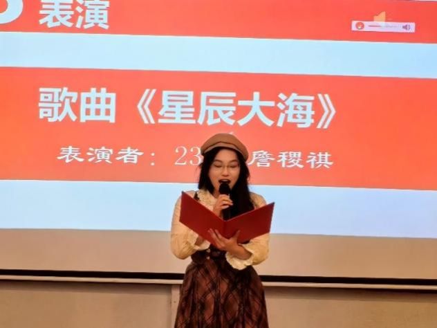 分享结束后,文学院23级学子詹稷祺带来歌曲《星辰大海》,悠扬的歌声为现场注入青春活力,也寄托着学子们奔赴理想的美好期许。