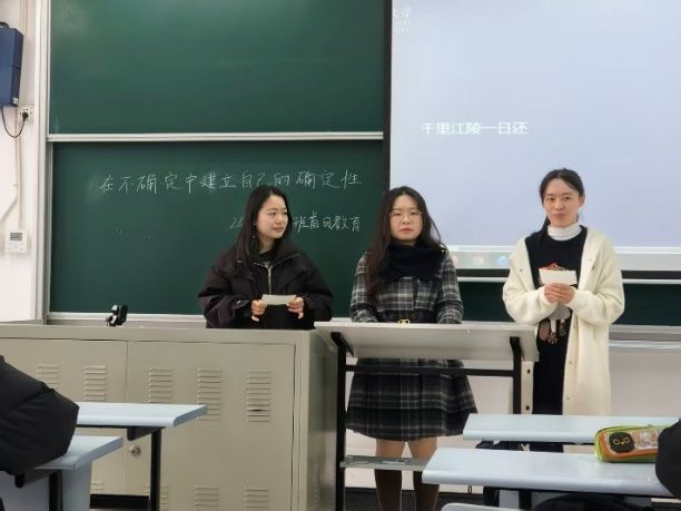 会上,辅导员张旭老师紧密结合学业阶段与未来发展趋势,进行了深入的分析与指导,涵盖保研政策的最新动态与准备要点、国内考研的总体形势与备考策略、出国留学的路径选择与申请规划,以及面向就业市场的核心能力储备与早期准备。大三春季学期是个人发展路径选择与发力的黄金时期,张老师鼓励同学们尽早确立目标,制定详实计划,并积极利用学校与学院提供的各类资源平台;同时鼓励同学们将个人理想追求主动融入国家发展大局,树立崇高的职业理想。
